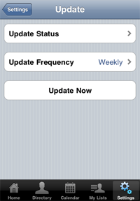 Using the Update Now button, you can initiate a fresh update of the data on your device. My LDS Stake can be set to automatically update your data, or you can force it to occur when that button is tapped. Likewise, you're able to tap the Stop Updating button to terminate the download. Be aware that you may have an incomplete set of data if you stop an update before it is complete.