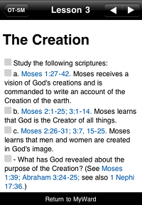 When you're finished reading with the lesson, just tap the Return to My LDS Stake link at the bottom of the screen to get back to where you were in My LDS Stake.